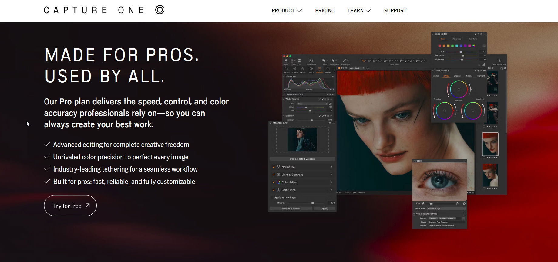 בגלל מגוון רחב של סיבות. השליטה בגווני צבע היא מדוייקת להפליא. אפשר להגיע לשינויים של תתי גוונים ועד שינויי צבע מלאים כמו מאדום לכחול (במקרה של צילומי מוצר שלפעמים צריך), בידוד גוונים הוא מדוייק, שליטה מלאה בגוונים ספציפים בכל שטח התמונה בלחיצת כפתור. למעשה כל השליטה בצבע נעשת בקלות רבה וללא מאמץ. התוכנה בעלת יכולות AI שצומחות ללא הפסקה ובקצב גבוה. היא מבינה לפי הקורפ הבודד שעשיתם מה הקרופ הנכון לכם בכל קבוצת הצילומים ואיפה למקם אותו. לדוגמה, כשאתם מצלמים מודלית והיא זזה הקרופ האוטומטי יזוז איתה, כך שלא צריך לעבור על תמונה, אחת אחת. היא יודעת לזהות תתי חלקים בגוף ולצבוע אותם במברשת כך שלא צריך לעשות כלום. היא יודעת לעשות מעברים מדוייקים ומדורגים בין שכבות צבע שונות. בניית המסכות היא קלה מאוד לתפעול. השליטה והדקויות של המברשות היא ברמת השערה הבודדת. היא יודעת לזהות שערה אחת שיצאה מהראש ולצבוע רק אותה. היכולת להוציא מידע מקבצי צילום היא עצומה והיא יודעת לסחוט כל שבריר של מידע. קצב העבודה בה מהיר יותר ודורש פחות התעסקות עם דברים מסביב. יש לה יכולת גבוהה לתקן עיוותים בעדשות רחבות זווית, יכולת מעולה לנקות "כתמים סגולים". תמיכה טכנית מהירה ישירות מצוות טכניים שיושבים בגרמניה (עם הנימוס והדיוק הגרמני הידוע), היא עובדת מהר יותר מכל תוכנה אחרת בתחום. היא דורשת פחות כח מהמחשב, דבר שאפשר לראות בדרישות המינימום שהם באמת נמוכות: